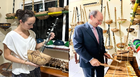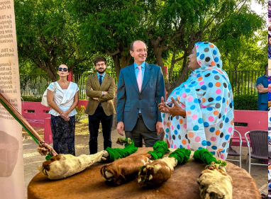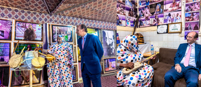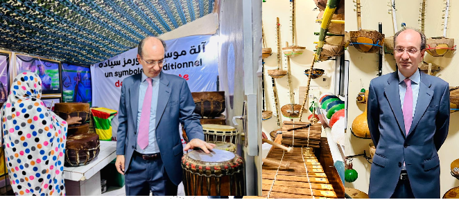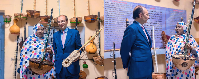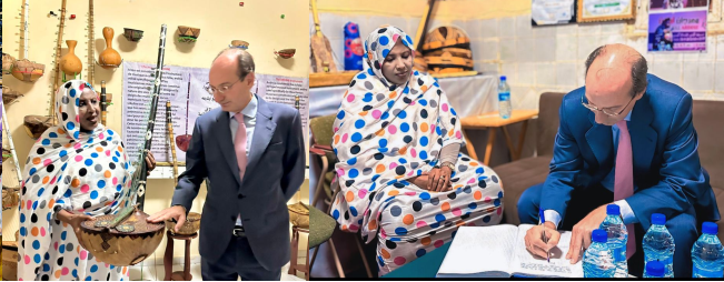 وأبدى سعادة السفير الإسباني ارتياحه للتراث الموسيقي الموريتاني، وقضى وقتا يتصفح مختلف الآلات الموسيقية التقليدية.